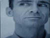 closed eyes and quick smirk.